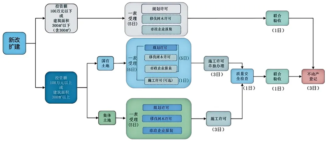 近年來,北京市持續(xù)深化工程建設(shè)項(xiàng)目審批制度改革,一是探索建立基于風(fēng)險(xiǎn)的分級(jí)分類審批制度,按照無風(fēng)險(xiǎn)項(xiàng)目“非禁免批”,低風(fēng)險(xiǎn)項(xiàng)目“簡化審批”,一般風(fēng)險(xiǎn)項(xiàng)目“告知承諾”,高風(fēng)險(xiǎn)項(xiàng)目“嚴(yán)格審批”的4類方式推進(jìn)改革,特別是在全國率先推出簡易低風(fēng)險(xiǎn)改革,項(xiàng)目辦理時(shí)限由208天壓縮至14天。二是強(qiáng)化部門協(xié)同、推行“并聯(lián)審批”,有關(guān)主管部門合力再造審批流程,推行“多規(guī)合一”“多審合一”“多測合一”“多驗(yàn)合一”疊加施效的高效審批模式。據(jù)公開數(shù)據(jù),北京市建筑許可相關(guān)的14個(gè)審批部門的200余項(xiàng)審批服務(wù)事項(xiàng)已壓減一半以上。